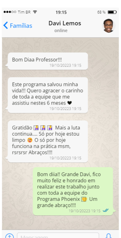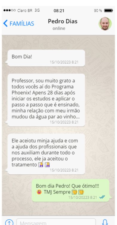 VOCÊ e e sua FAMÍLIA receberão acompanhamento de nossa equipe de prevenção de recaídas durante e após o treinamento afim de garantir a correta execução do passo a passo do MÉTODO e sanar dúvidas